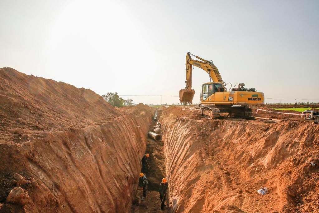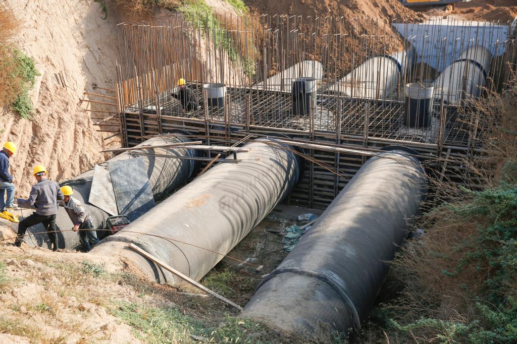 ▲施工13標全程34.8公里,目前已完成24.7公里。圖為涑水壓力泵站二號壓力管線排氣閥井施工