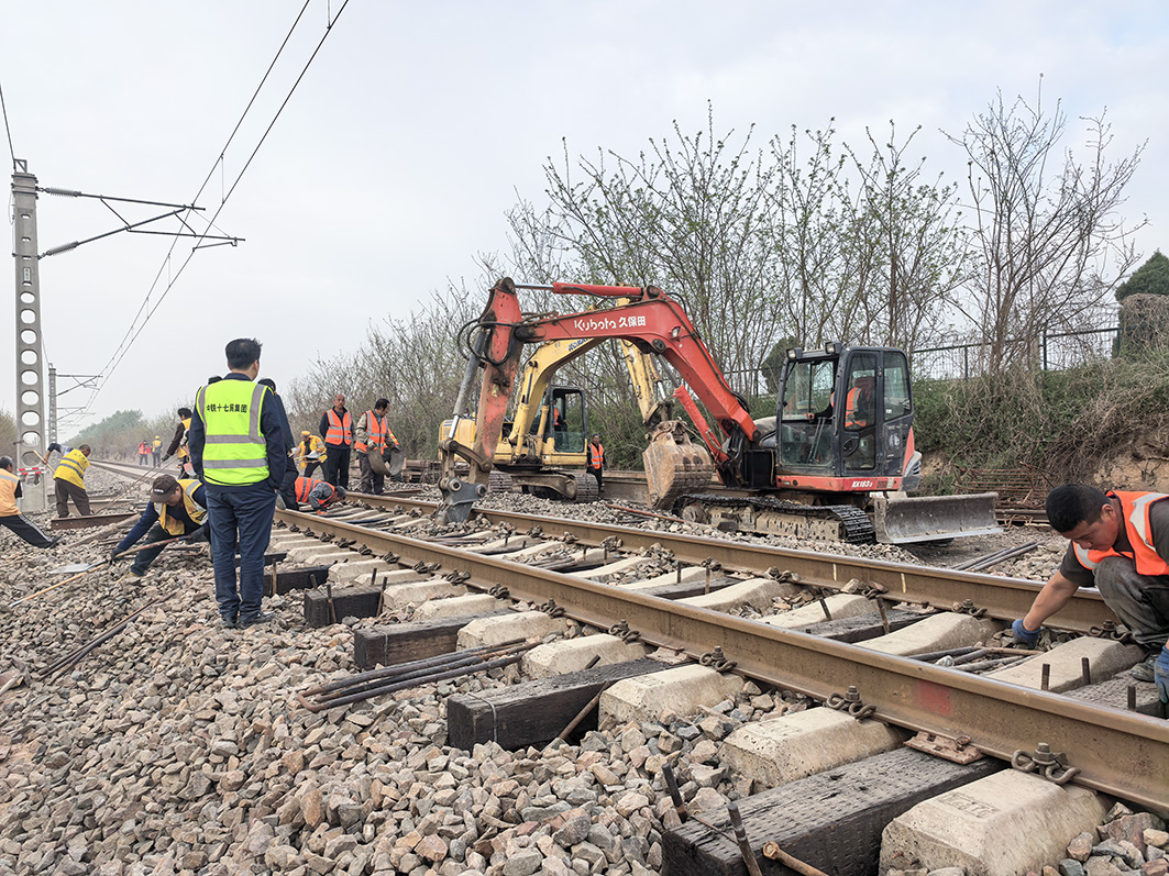 ▲對G8頂管上方的南同蒲鐵路路基進行加固和防護作業