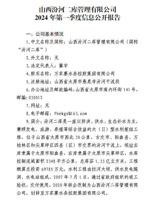 山西水控實(shí)業(yè)有限公司2024年第一季度信息公開報(bào)告