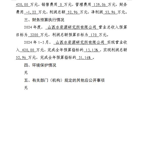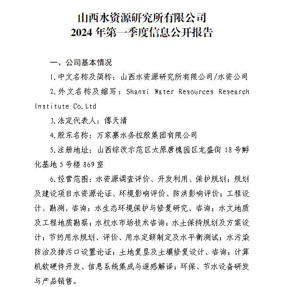 山西水投汾景水務有限公司2024年第一季度信息公開...