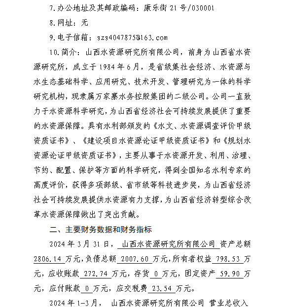 萬家寨水務控股集團有限公司2024年一季度財務等重...