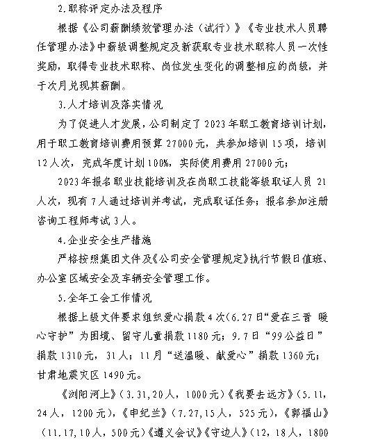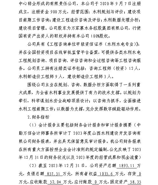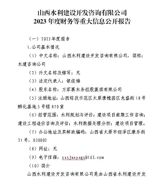 山西汾河一壩管理有限公司2023年度財務等重大信息...