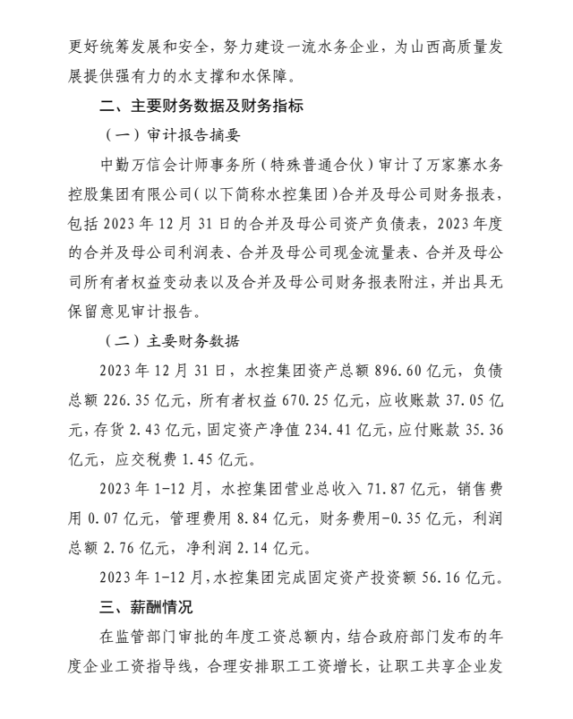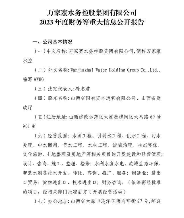 山西汾河流域管理有限公司2024年中期財務等重大信...