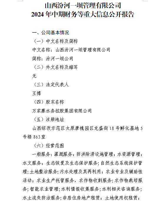 山西小浪底引黃水務集團有限公司2024年中期信息公...