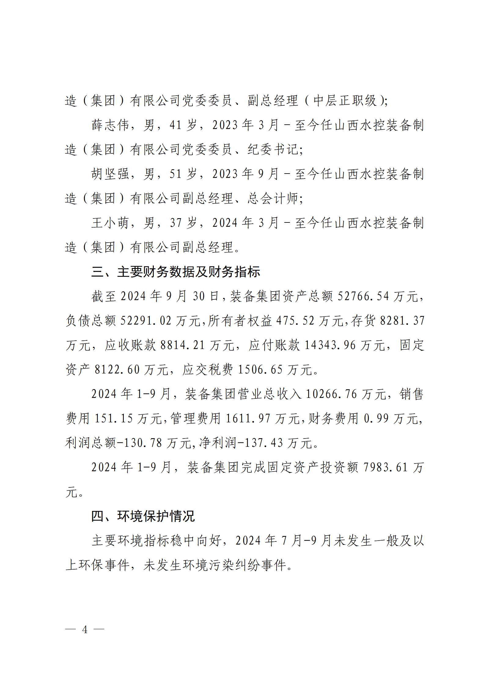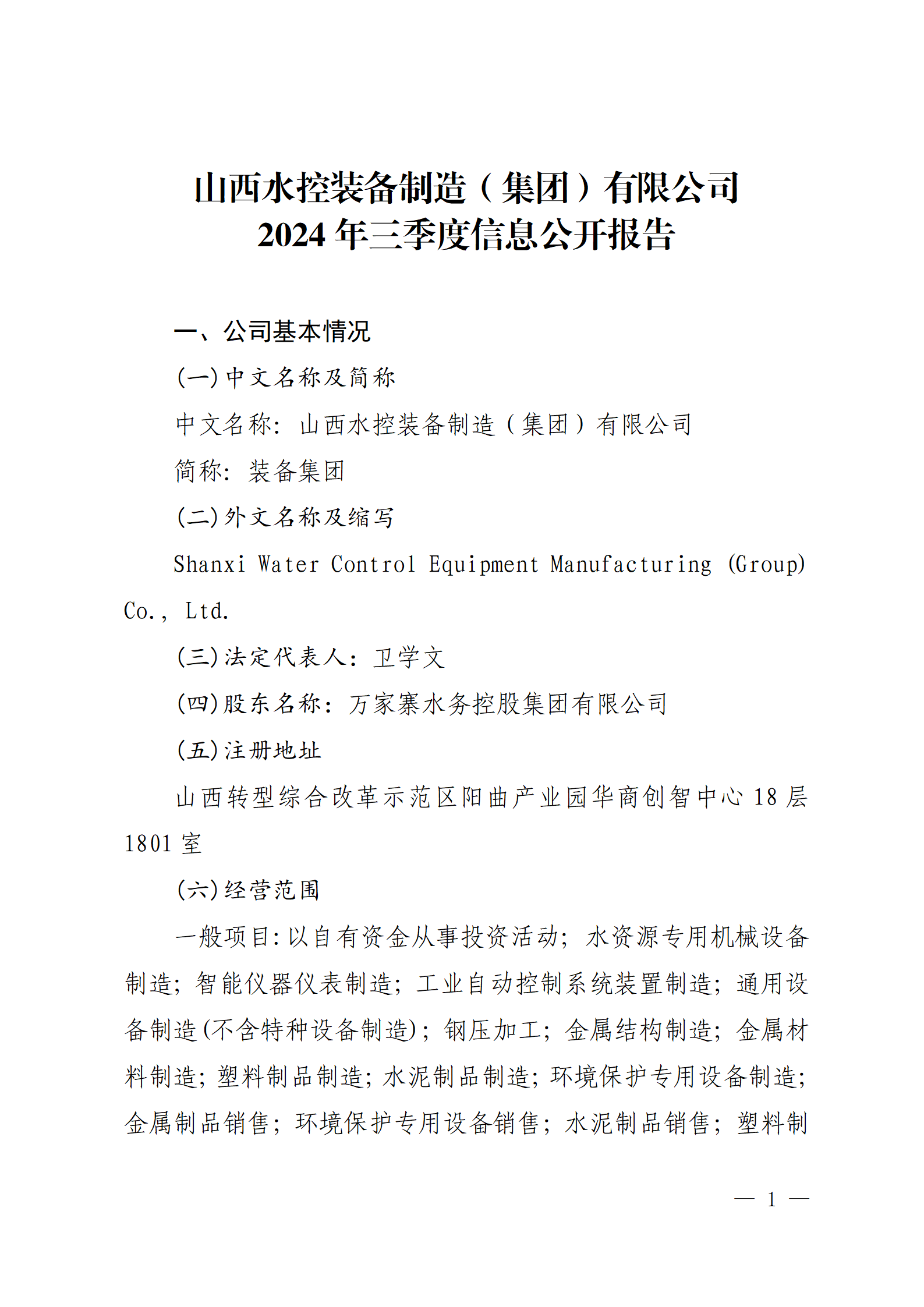 山西水控實(shí)業(yè)有限公司2024年中期信息公開報(bào)告