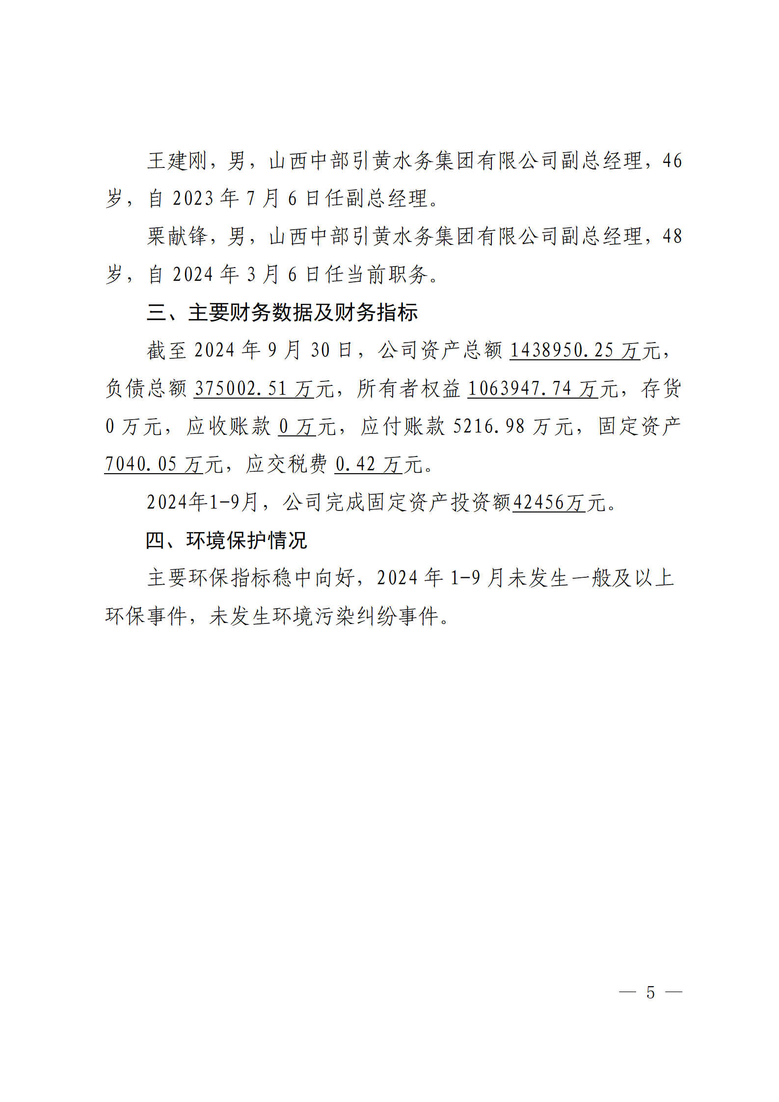 山西汾河流域管理有限公司2024年第三季度財務等重...