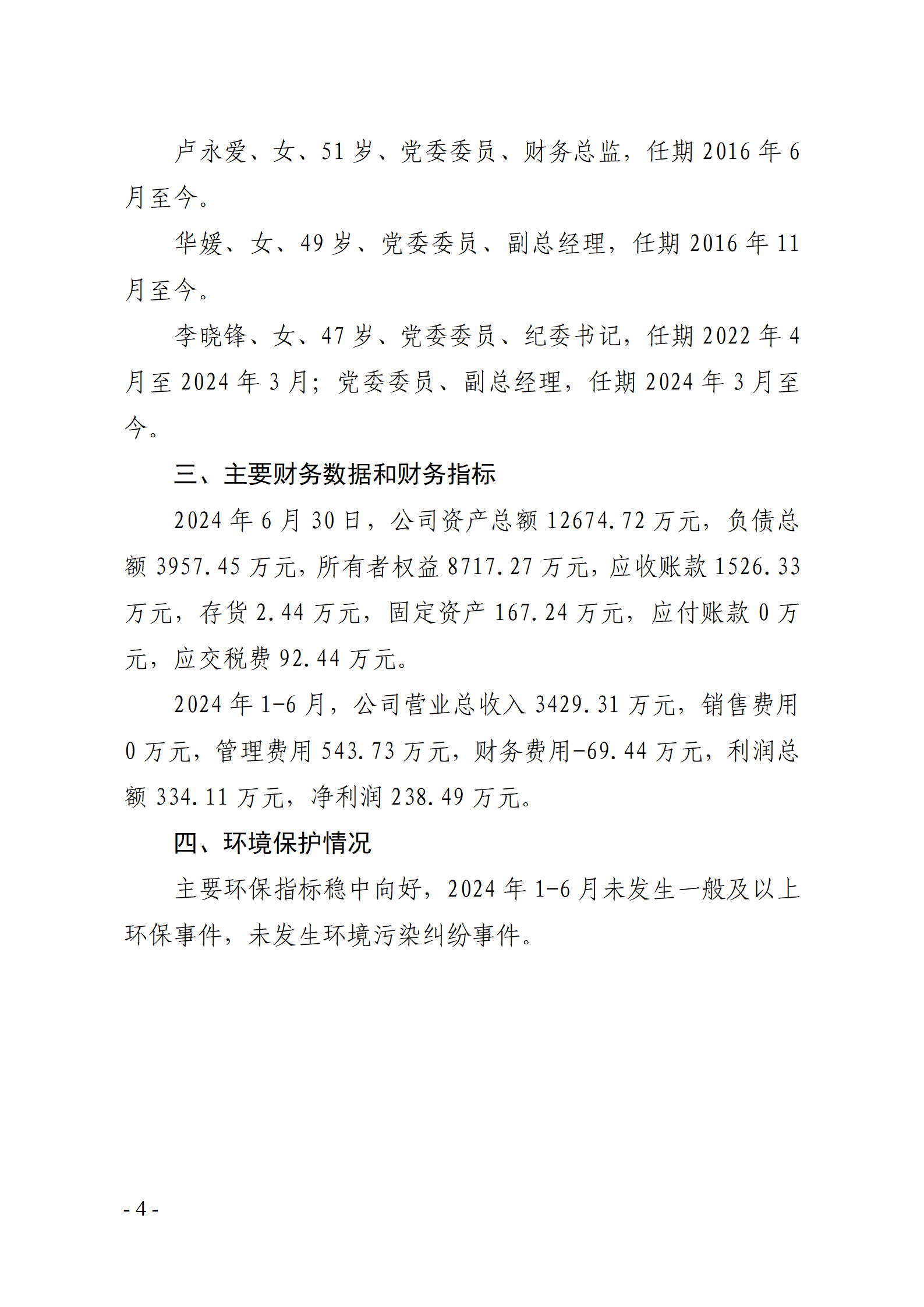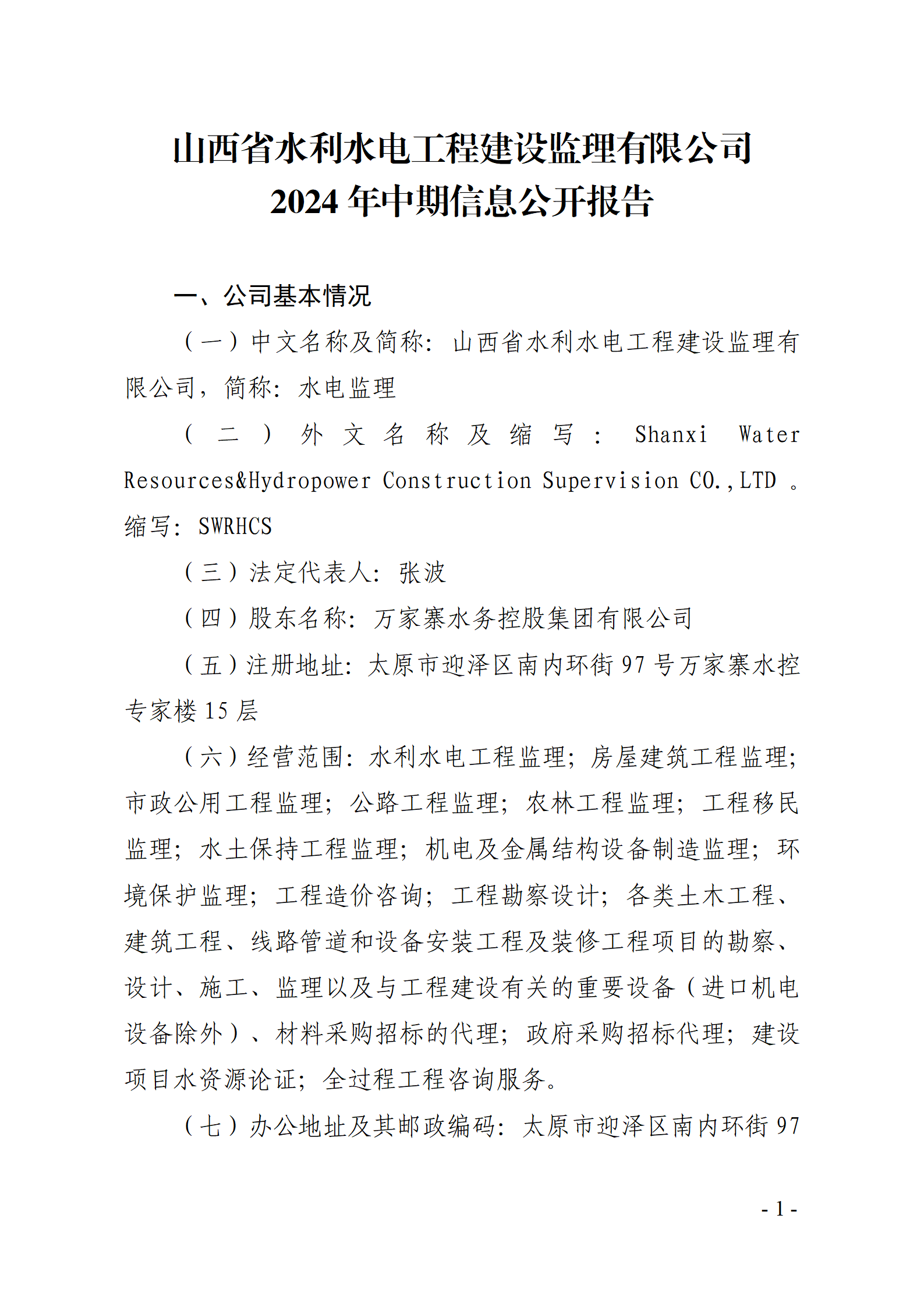 山西沁河水務集團有限公司2024年中期信息公開報告