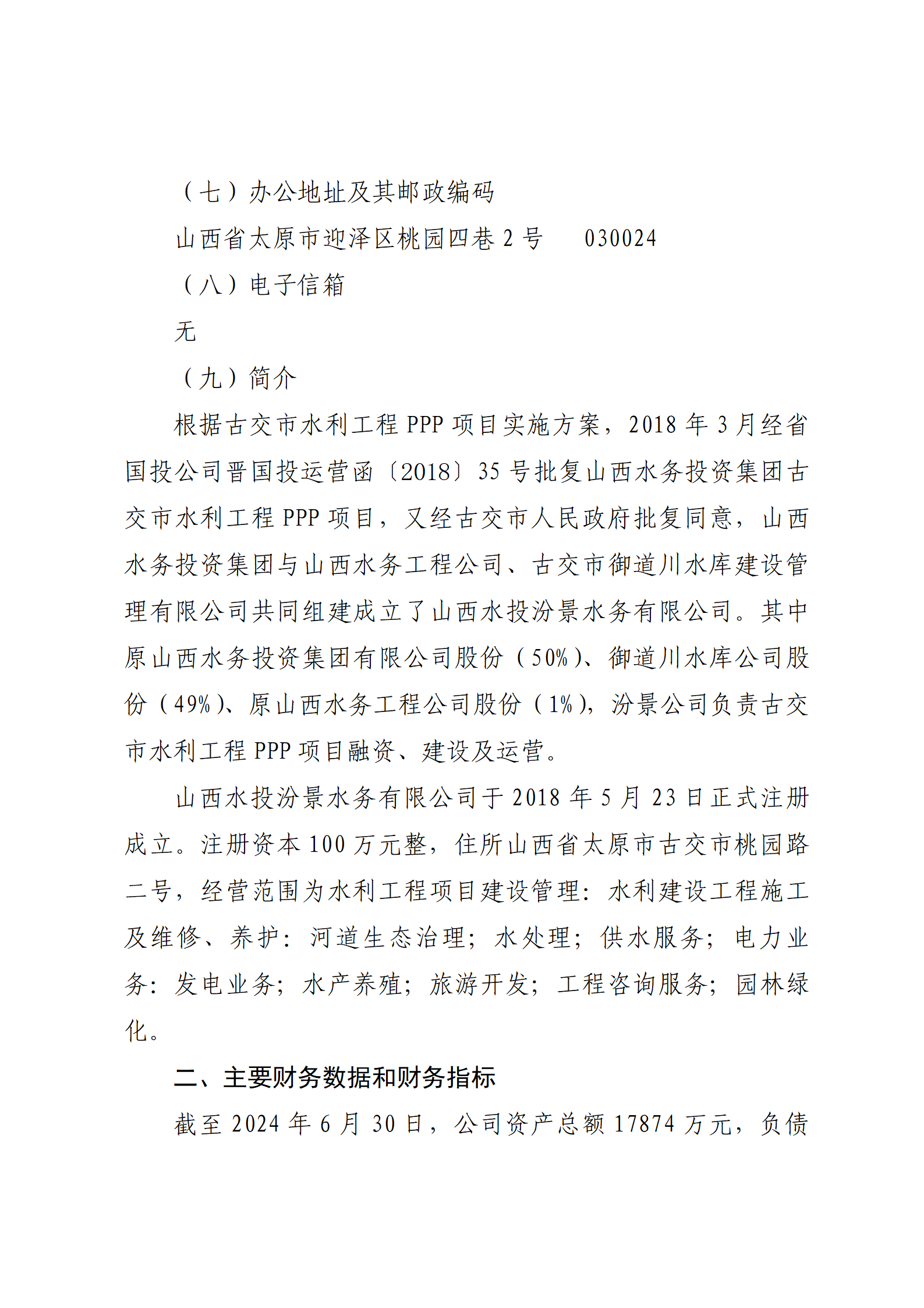 山西沁河水務(wù)集團(tuán)有限公司2023年度財務(wù)等重大信息...