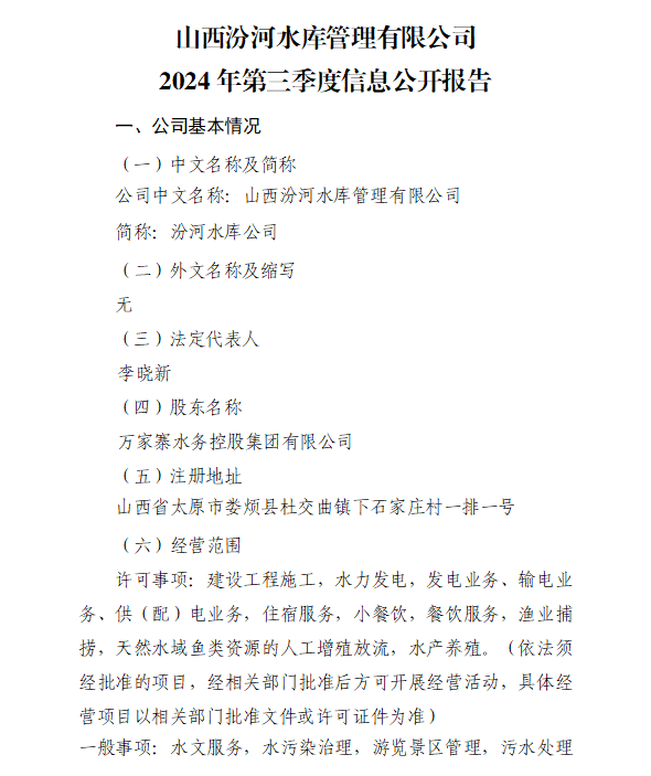 山西禹門口引黃水務(wù)集團(tuán)有限公司2024年第三季度信...
