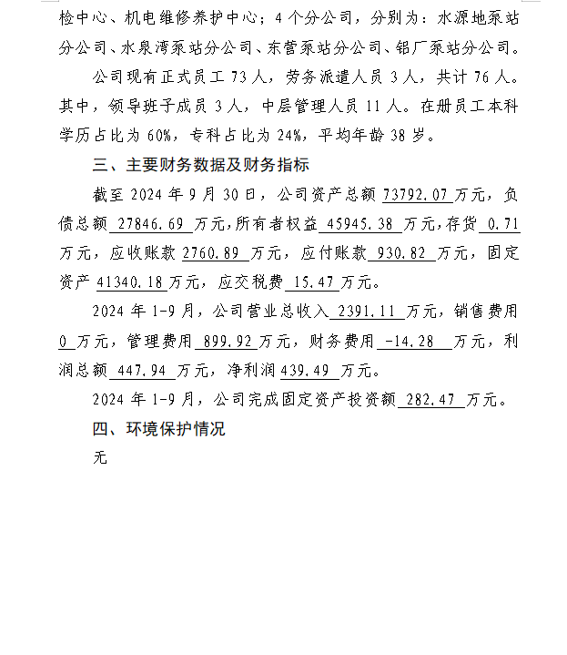 山西禹門口引黃水務(wù)集團有限公司2024年第三季度信...