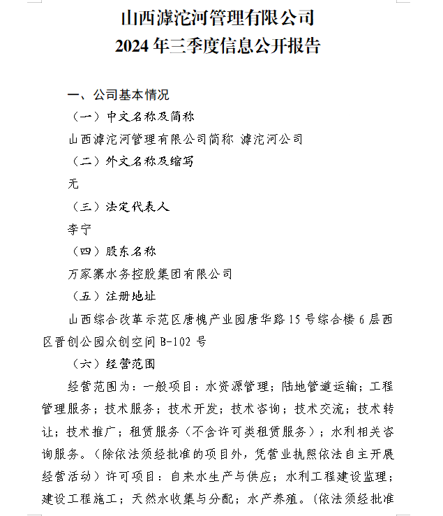 山西水投汾景水務(wù)有限公司2024年第三季度信息公開...