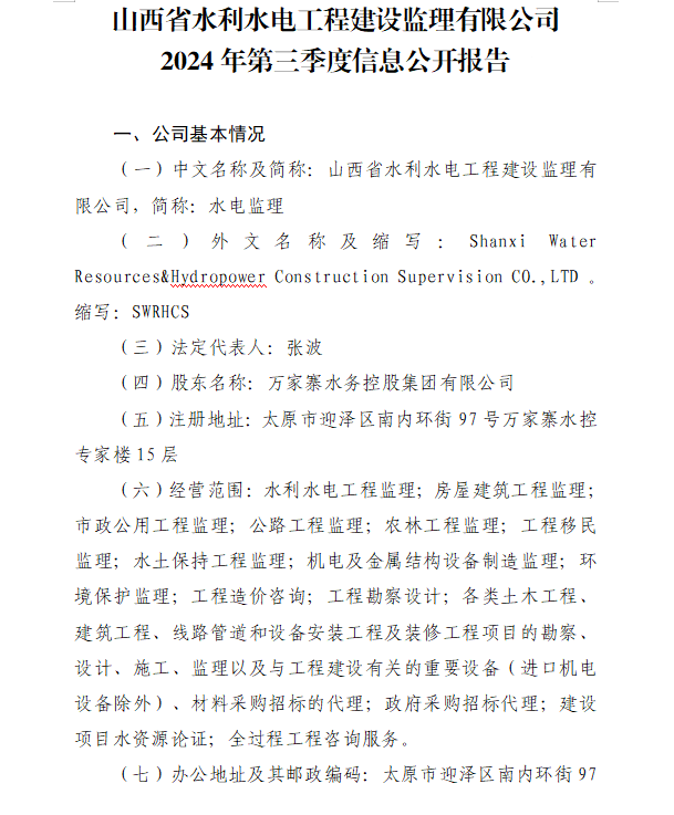 山西水利建設(shè)開(kāi)發(fā)咨詢(xún)有限公司2024年第三季度信息...
