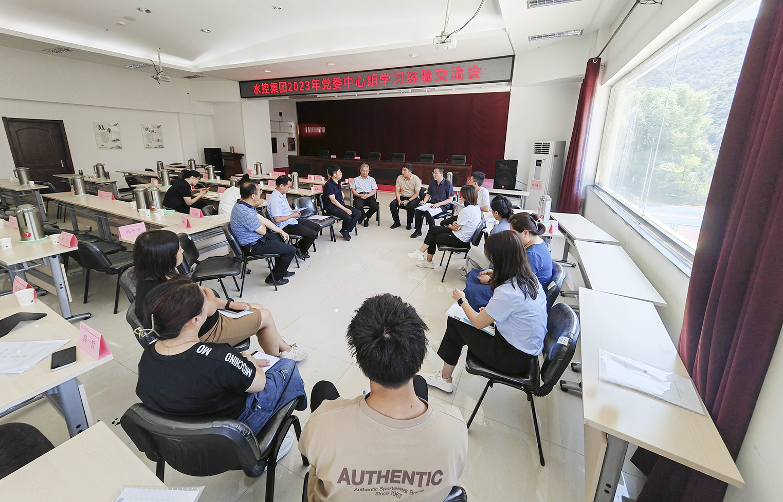 此次培訓,還組織開展了水控集團黨委中心組學習經驗交流會,萬家寨引黃水務集團、禹門口水務集團、水工局集團、水電監理公司等圍繞中心組學習的特色做法和工作亮點進行經驗分享;參訓人員結合學習體會、下一步工作思路等分組開展交流討論。