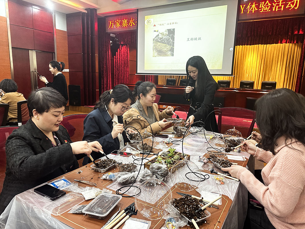 水控集團(tuán)總部開展女職工普法宣傳活動,為女職工發(fā)放了《中華人民共和國婦女權(quán)益保障法》《中華人民共和國安全生產(chǎn)法》等書籍;開展“迎三八”——微景觀盆栽DIY活動,用美育涵養(yǎng)“美麗心靈”。